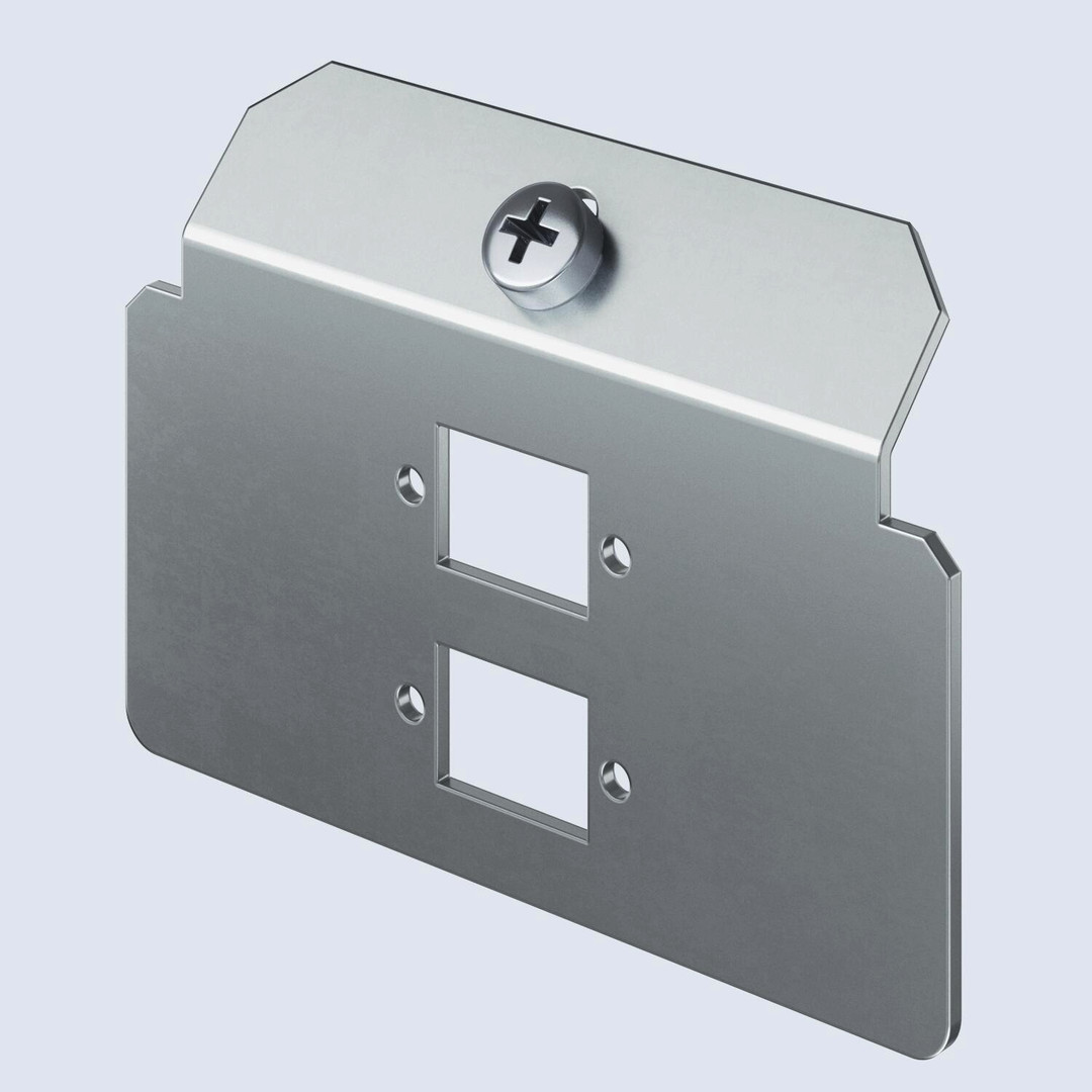 Trägerplatte zur Aufnahme von zwei Durchführungsbuchsen der Datentechnik, Typ LC-Duplex.