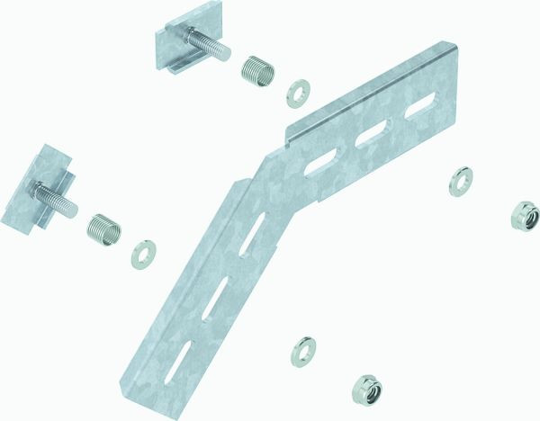 | Kurzbeschreibung | Montagewinkel 45° für C-Gitterrinne 178x103 Stahl tauchfeuerverzinkt |