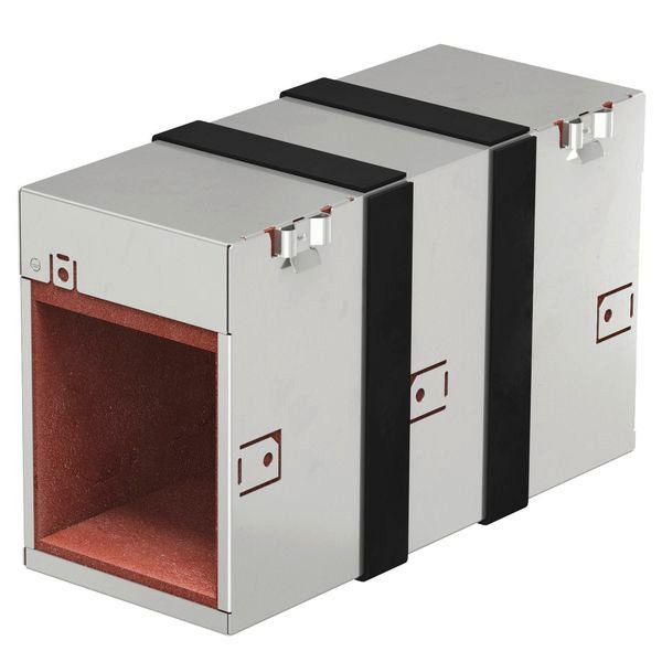 | Kurzbeschreibung | Brandschutzbox vierseitig mit intumeszierenden Einlagen 300x123x181 Edelstahl, rostfrei A2 1.4113 blank, nachbehandelt |