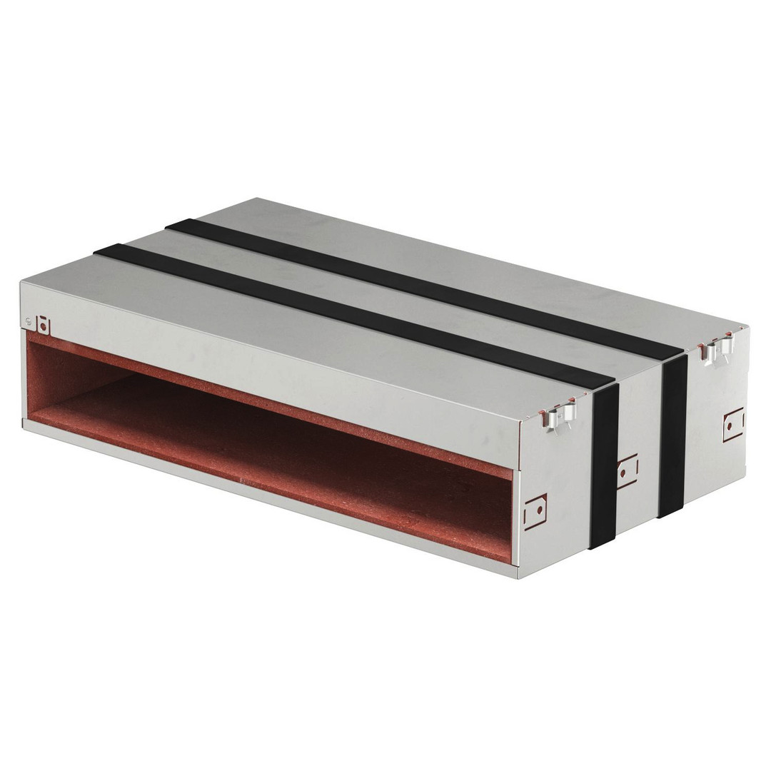 Brandschutzbox als Abschottungssystem aus zweiteiligem Edelstahlgehäuse mit intumeszierenden Brandschutzeinlagen. Einsetzbar in Wänden und Decken. Schnelle Montage durch wiederlösbare Magic-Verbindung. Innenraum vollständig mit Installationen belegbar. Anwendung im Innenbereich. Verschluss der Restöffnungen mit Brandschutzschaum PYROSIT® NG, besonders einfach bei schwierigen Geometrien. CE-gekennzeichnetes Bauprodukt mit allgemeiner Bauartgenehmigung. Feuerwiderstandsklasse EI90 (feuerbeständig). Inklusive Graphitstreifen.