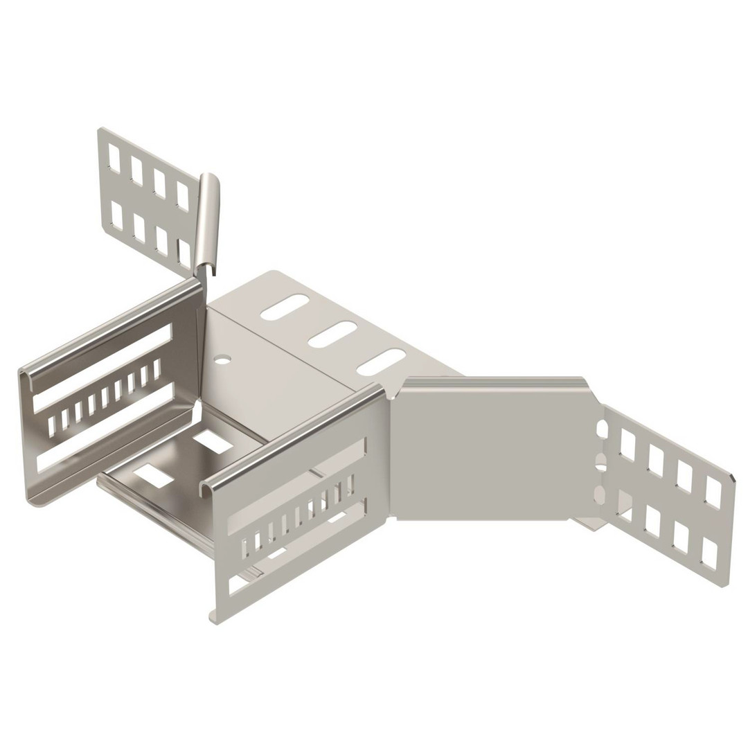 Anbau-Abzweigstück zum Erstellen einer horizontalen Abzweigung oder Kreuzung, Formteil für rast- und schraubbare Kabelrinnen Seitenhöhe 60 mm. Schraubenlose Montage mit Doppelklemmen oder Schraubverbindung mit Flachrundschrauben FRS und Kombimuttern M6. Einsetzbar im Innen- und Außenbereich. Befestigungsmaterial muss separat bestellt werden.