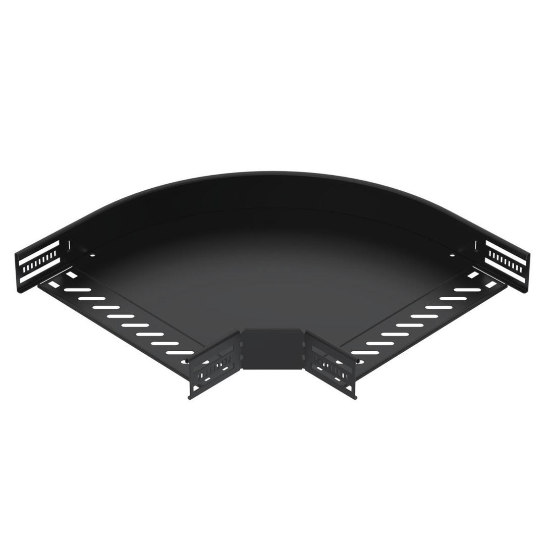 | Kurzbeschreibung | Bogen 90° für Kabelrinne, horizontal 60x300 Stahl PES135 - Polyester tiefschwarz RAL 9005 |