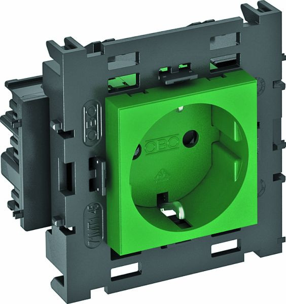 | Kurzbeschreibung | Steckdose 0°, 1-fach Schutzkontakt, Connect 80 250V, 10/16A Polycarbonat minzgrün RAL 6029 |
