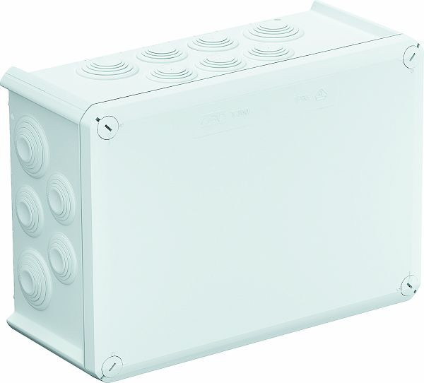 Kabelabzweigkasten gemäß DIN EN 60670. Flammwidrig nach DIN EN 60695-2-11, Prüftemperatur 650°C. Schlagfestigkeit IK05 gemäß DIN EN 50102.