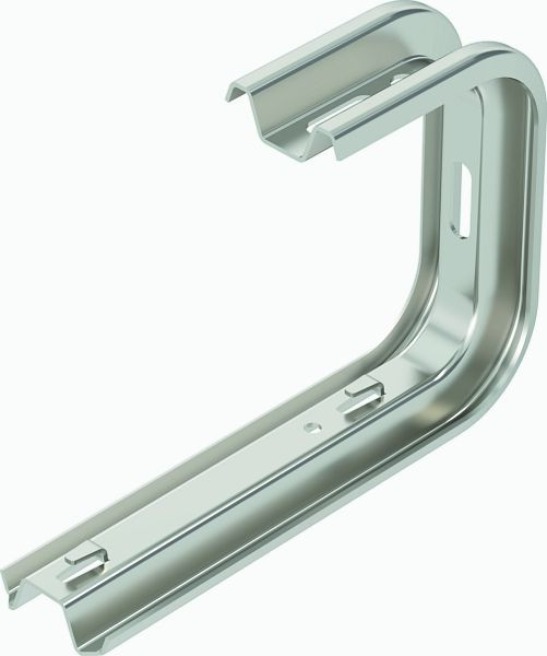 TP-Wand- und Deckenbügel mit Klemmlaschen für die schraubenlose Gitterrinnenbefestigung.