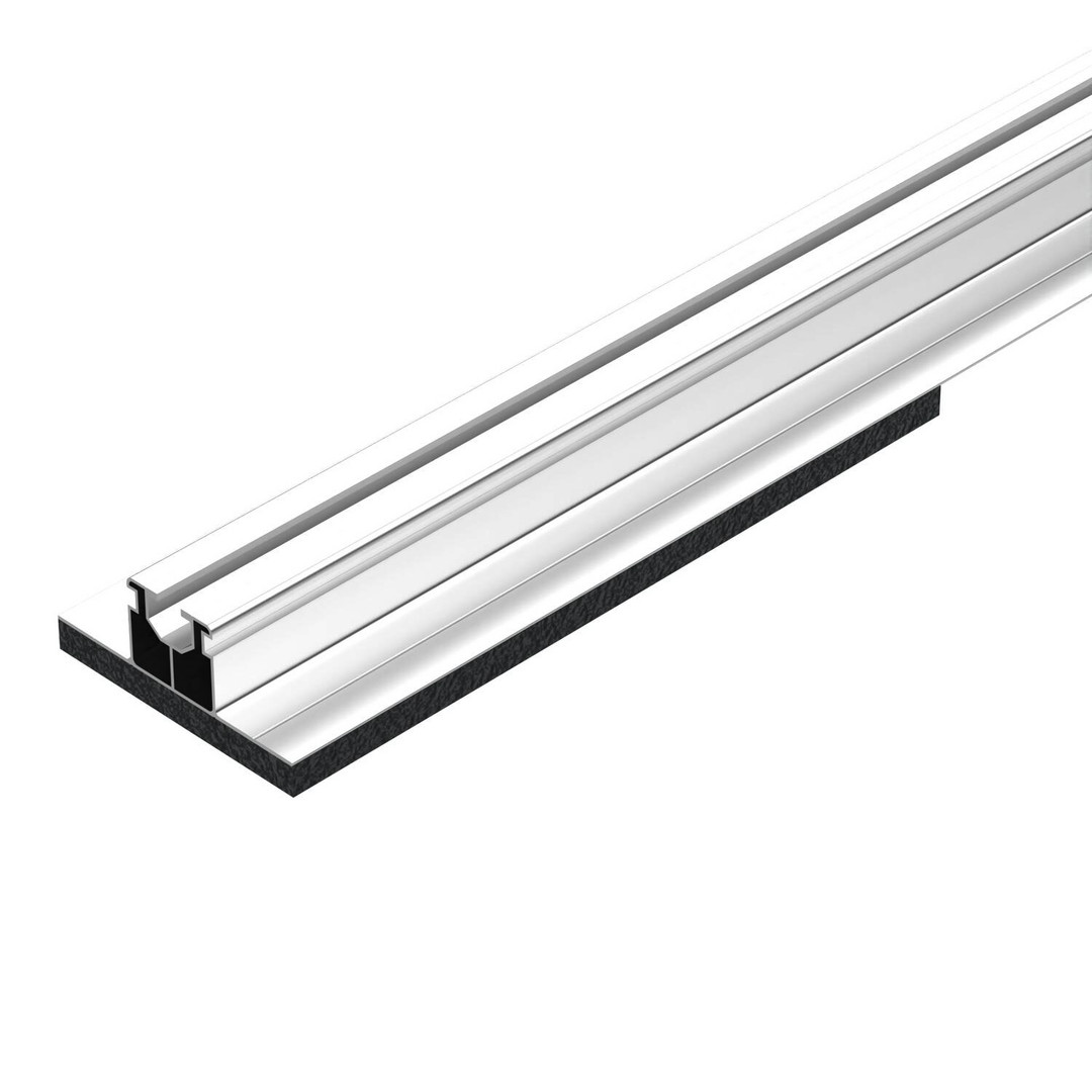 Rutschfestes Trägerprofil zum Montieren von Photovoltaik-Modulen auf Flachdächern. Basis zur Aufnahme von kurzen und langen Stützen STK und STL. Schraubbare Längsverbindung mehrerer Trägerprofile mit Längsverbinder LV 35.