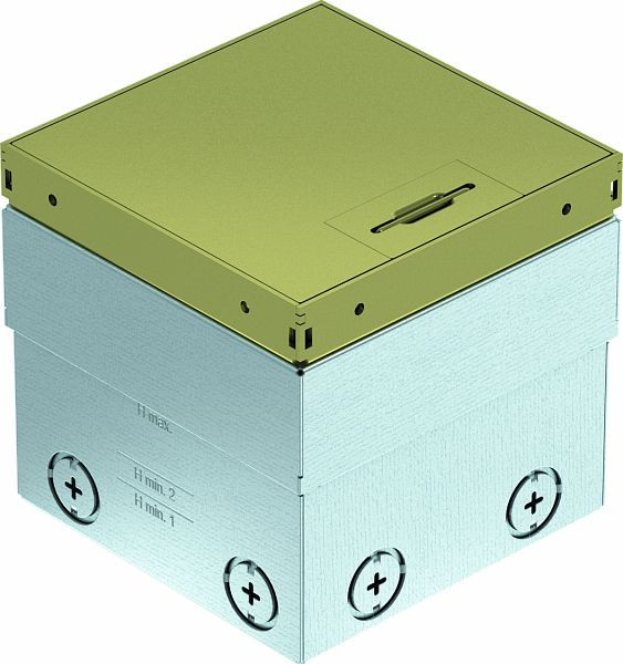 | Kurzbeschreibung | Bodensteckdose unbestückt 140x140x110 Messing |