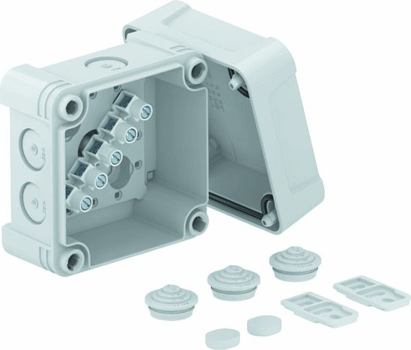 | Kurzbeschreibung | Kabelabzweigkasten mit Klemmleiste 95x95x72 Polycarbonat lichtgrau RAL 7035 |