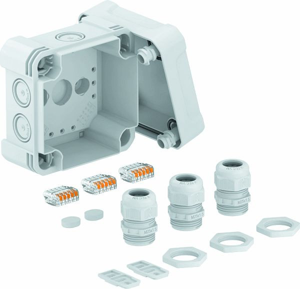 Inklusive 3 Universal-Steckklemmen (5-polig), 3 Kabelverschraubungen V-TEC M20 und 3 Gegenmuttern.