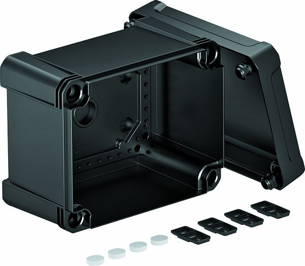 | Kurzbeschreibung | Leergehäuse 190x150x125 Polycarbonat graphitschwarz RAL 9011 |