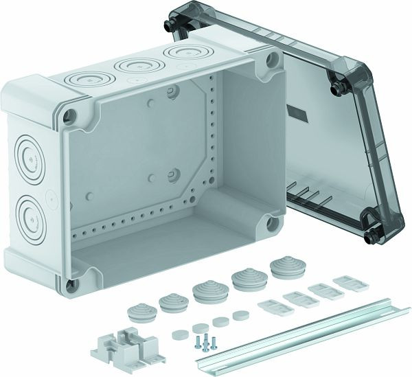 | Kurzbeschreibung | Kabelabzweigkasten mit TR Deckel, Schiene 2069 286x202x125 Polycarbonat grau / transparent |