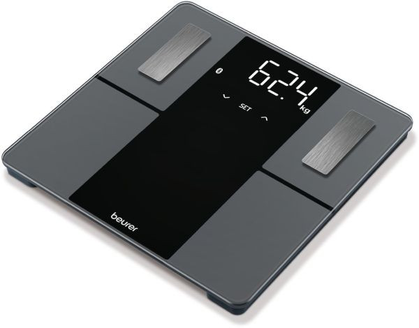 Vernetzung zwischen Smartphone und Waage: Messwerte immer im Blick, Verbindung über Bluetooth® low energy technology, inklusive App zum Download, auch ohne App nutzbar, Trittfläche aus Sicherheitsglas, titanbeschichtete Edelstahlelektroden, mit extra großem Magic Display (erscheint nur bei der Messung), Ziffernhöhe 40 mm, Körpergewicht, -fett, -wasser, Muskelanteil, BMI; weitere Werte in der App (metabolisches Alter, Kalorien BMR/AMR,Knochenmineralanteil), Einteilung: 100 g/0,1%, 5 Aktivitätsgrade, 8 Benutzerspeicher mit automatischer Benutzererkennung, Ein- und Abschaltautomatik, inkl. Batterien 3 x AA , 5 Jahre Garantie