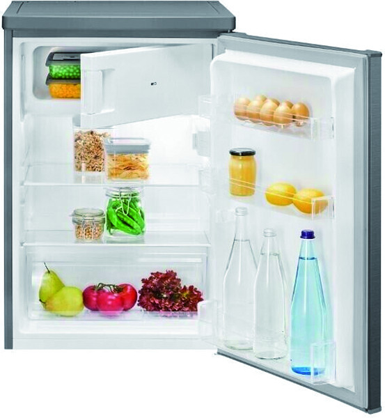 stufenlose Temperatureinstellung, visuelle Alarmfunktion (Innenbeleuchtung blinkt) bei offen stehender Gerätetür, Kühlteil: LED Innenraumbeleuchtung, 2 Glasablagen, davon 1 höhenverstellbar, 1 transparente Gemüseschale; 4-Sterne-Gefrierfach; Türanschlag rechts, wechselbar