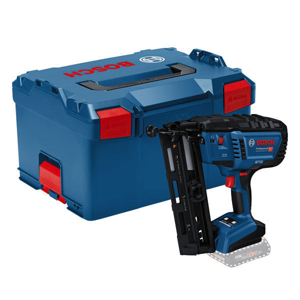 Akku-Holznagler GNH 18V-64-2 M, Als professioneller Handwerker willst du Nägel effizient und ohne zu große Belastung für Hand und Arm eintreiben. Wir haben den leistungsstarken, bürstenlosen GNH 18V-64-2 M Professional mit einem sehr geringen Rückschlag entwickelt, der dein Handgelenk schont. Außerdem haben wir darauf geachtet, dass du das Werkzeug einhändig einschalten und bedienen kannst. Dieses Werkzeug bietet die volle Leistung eines Druckluftnaglers, aber frei von Kompressor, Gaskartusche oder Kabel. Ideal für die Montage von Fenster- und Türrahmen, Zierleisten, Balustern an Treppengeländern, Decken- und Bodenpaneelen mit Nut- und Federverbindung (verdeckte Nagelung), Täfelungen und Sockelleisten. Kompatibel mit dem Bosch Professional 18V System und mit der markenübergreifenden AMPShare Akku-Allianz. Mit einhändig bedienbarem Ein-/Aus-Schalter, HMI mit Service-Warnung, Einzel- und Kontaktauslösung, benutzerfreundlicher stufenloser Tiefenverstellung, Trockenschuss-Sperre, Doppel-LED, großem Sichtbereich an der Kontaktspitze, werkzeuglosem Entfernen verklemmter Nägel. Geeignet für folgende Nägel: 32-64 mm, 16 ga (1,6 mm) und 20° Magazinwinkel. L-BOXX 238 (1 600 A01 2G2)
