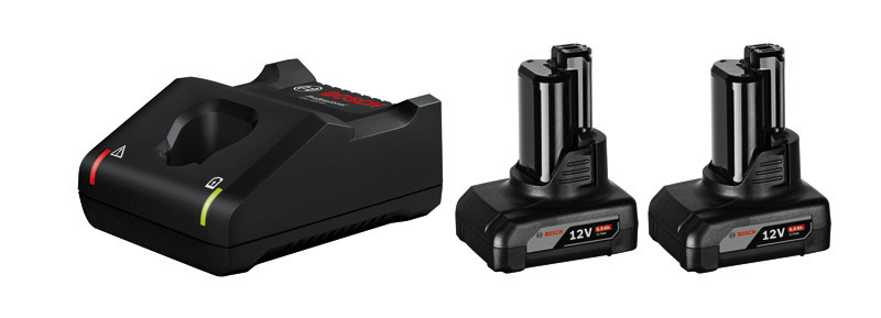 Starter-Set 2 x GBA 12V 6.0Ah + GAL 12V-40, 2 x 12-Volt-Akku mit 6,0 Ah Kapazität und Schnellladegerät, GBA 12V 6.0Ah: Extrem hohe Akkukapazität für bis zu 300 % mehr Laufzeit als beim 12V 2,0 Ah Professional-Modell, GAL 12V-40: Hohe Ladegeschwindigkeit für alle 12-Volt-Akkus. Laden von 12V-/6,0-Ah-Akkus von 0 % auf 80 % in nur 72 Minuten., Kompatibel seit 2005: Alle unsere Akkus passen innerhalb der jeweiligen Voltklasse in die neuen und die bereits vorhandenen Bosch Professional Werkzeuge