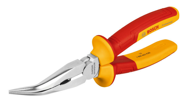 Professionelle Handwerker brauchen Werkzeuge, die leicht anzuwenden sind und allen gesetzlichen Vorgaben entsprechen. Mit der Bosch Professional VDE-Spitzzange gebogen 40° lassen sich Objekte wie Nägel greifen oder ziehen, oder Objekte wie Drähte schneiden, selbst bei unerwartetem Kontakt mit stromführenden Teilen. Dieses normgerechte Werkzeug ist mit thermoplastischem Polyurethan (TPU) isoliert. Es wurde bis zu 10.000 Volt geprüft und bis 1.000 Volt VDE-zertifiziert gemäß DIN EN/IEC 60900. Die VDE-Zange liegt gut in der Hand und schneidet mühelos. Sie greift und schneidet gut und ist sehr langlebig. Diese langlebige Zange wurde aus robustem Chrom-Vanadium-Stahl gefertigt und verfügt über gehärtete Schnittkanten. Durch die Aufnahme von VDE-Handwerkzeugen in unser Bosch Professional-Sortiment sind nun alle erforderlichen Werkzeuge in zuverlässiger Bosch-Qualität erhältlich.