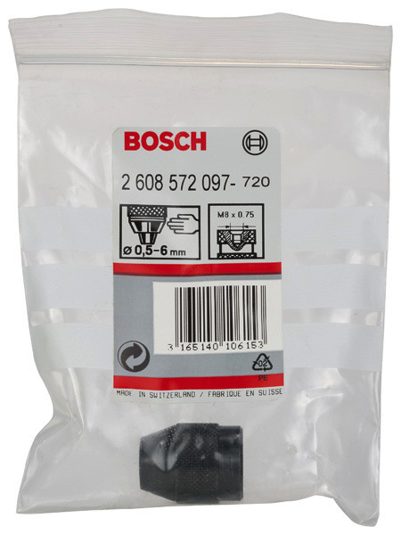 Das Ersatzbohrfutter weist einen Spannbereich von 6 mm Durchmesser auf und ist für die Verwendung mit der Vorsatzbiegewelle 2 609 200 195 bestimmt.