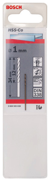 | Kurzbeschreibung | Metallbohrer HSS-Co, DIN 338, 1 x 12 x 34 mm, 1er-Pack |