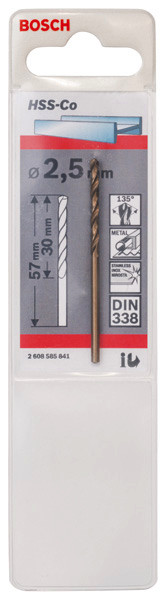 | Kurzbeschreibung | Metallbohrer HSS-Co, DIN 338, 2,5 x 30 x 57 mm, 1er-Pack |