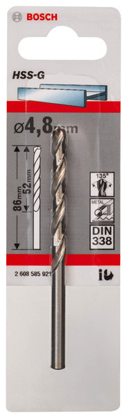 | Kurzbeschreibung | Metallbohrer HSS-G, DIN 338, 4,8 x 52 x 86 mm, 10er-Pack |