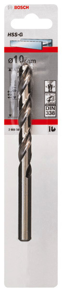 | Kurzbeschreibung | Metallbohrer HSS-G, DIN 338, 10 x 87 x 133 mm, 1er-Pack |
