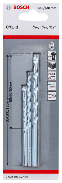 | Kurzbeschreibung | 3-tlg. CYL-1 Steinbohrer-Set, 5/6/8 mm |