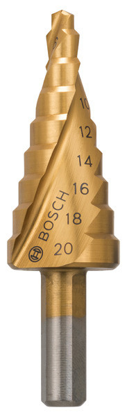 | Kurzbeschreibung | Stufenbohrer HSS-TiN, 4 - 20 mm, 8 mm, 75 mm, 9 Stufen |