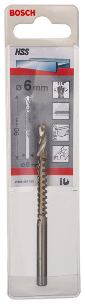 | Kurzbeschreibung | Fräsbohrer HSS, 6 mm, 90 mm, d 6 mm |