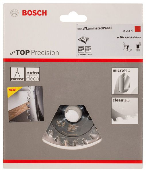 Das Top Precision Best for Laminated Panel Vorritzsägeblatt ermöglicht industriequalitative Präzision für sehr anspruchsvolle Anwendungen bei laminierten Paneelen, die an einer oder zwei Seiten beschichtet sind. Diese hohe Leistung und Qualität werden durch die einzigartigen besonders harten Microteq-Zähne verstärkt, die intern bei Bosch hergestellt werden, und aus robustem Carbide-Korn bestehen. Cleanteq reduziert zudem die Anhaftung von Rückständen, wie z. B. Harz und Klebstoff, um besonders saubere Ergebnisse sicherzustellen, während Korrosion verhindert und das Blatt kühl gehalten wird. Das einstellbare Vorritzsägeblatt ist für das Schneiden von Spanplatten, Paneelmaterialien und furniertem Laminat konzipiert. Das Top Precision Best for Laminated Panel Vorritzsägeblatt verfügt über eine ATB-Zahngeometrie (Wechselzahn), wodurch saubere Schnitte in alle Arten an Holz und laminierten Paneelen ermöglicht werden.