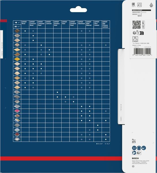 Lange Lebensdauer in Hochdruck-Schichtpressstoffplatten! Zusätzliche Beschichtung für mehr Leistung und längere Haltbarkeit Hochdruck-Schichtpressstoff wird aufgrund seiner Langlebigkeit häufig in der Bau- und Möbeltischlerei verwendet. Doch die Oberflächen können einem Kreissägeblatt sehr zusetzen. Mit unserem Kreissägeblatt EXPERT High Pressure Laminate lassen sich Hochdruck-Schichtpressstoffplatten problemlos schneiden ? effektiv und immer wieder. Die feinen Zähne des EXPERT High Pressure Laminate sind scharf geschliffen und wurden mit der Bosch Carbide Technology hergestellt. Dadurch ist es sehr langlebig und ermöglicht saubere, präzise Schnitte. Zum Schutz vor Wärmestau und Korrosion haben wir es mit einer zusätzlichen Beschichtung versehen. Außergewöhnlich robust dank Bosch Carbide Technology