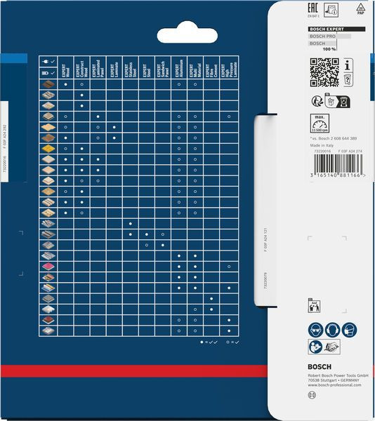 Lange Lebensdauer in Sandwich-Metallplatten! Zusätzliche Beschichtung für mehr Leistung und längere Haltbarkeit Wer auf einer industriellen Baustelle arbeitet, schneidet täglich Sandwich-Metallplatten. Dieser Werkstoff ist die Herausforderung für jedes Sägeblatt und macht Standard-Sägeblätter schnell stumpf. Aber nicht das EXPERT Sandwich Panel Kreissägeblatt. Mit unserem Kreissägeblatt können Sie sehr viele Sandwichplatten sauber schneiden. Die feinen Zähne des EXPERT Sandwich Panel sind scharf geschliffen und wurden mit der Bosch Carbide Technology hergestellt. Dadurch ist es sehr langlebig und ermöglicht saubere, präzise Schnitte. Zum Schutz vor Wärmestau und Korrosion haben wir es mit einer zusätzlichen Beschichtung versehen. Außergewöhnlich robust dank Bosch Carbide Technology