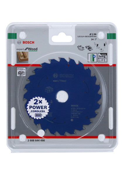 | Kurzbeschreibung | Kreissägeblatt für Akkusägen Expert for Wood, 136 x 1,5/1 x 20, 24 Zähne |