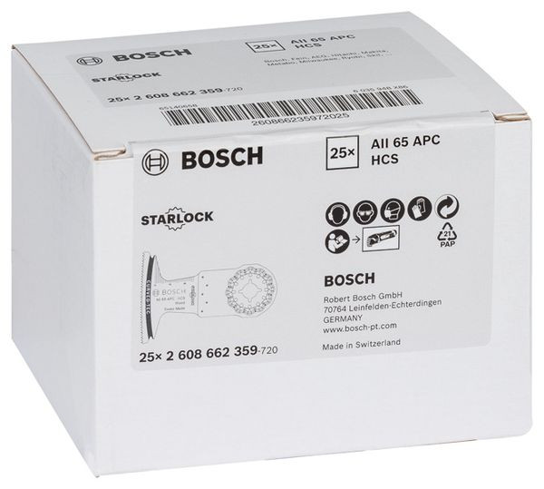 Das Tauchsägeblatt Starlock AII 65 APC ermöglicht breite und präzise Schnitte in Holz.? Seine abgerundete Blattspitze (Curved-Tec) ermöglicht präzise und glatte Tauchschnitte. Die flache Blattgestaltung reduziert Lateralschwingung und ermöglicht mittels direkter Kraftübertragung präzise Schnitte. Das zur Basis verjüngte Blatt minimiert Verklemmen, transportiert Späne schneller ab und sorgt somit für einen präzisen Schnitt. Dieses Produkt wird verwendet für das Tauchsägen in Weichholz, das Ablängen von Türstöcken in Bodenhöhe und das Sägen von Aussparungen in Möbelbauteile. Das Starlock-Aufnahmesystem ermöglicht ?einen schnellen Blattwechsel ohne Blattberührung in drei Sekunden.? Das Aufnahmesystem ermöglicht durch seine dreidimensionale enge Passung maximale Kraftübertragung zwischen Maschine und Zubehör.