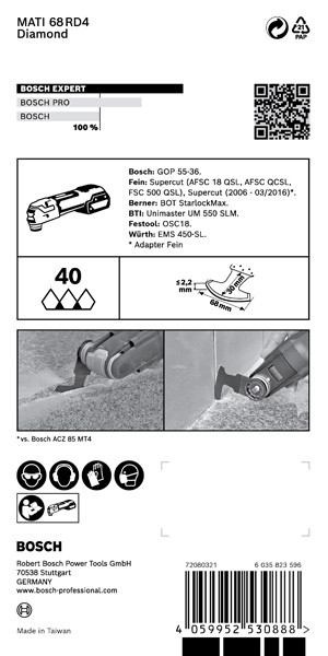 | Kurzbeschreibung | EXPERT Corner Blade MATI 68 RD4 Blatt für Multifunktionswerkzeuge, 68 x 30 mm |