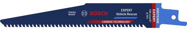 Schneiden von modernem Automobilstahl! Erster Zahn ermöglicht Tauchschnitte Bei Rettungsarbeiten an Fahrzeugen kann das schnelle Eindringen in ein Auto über Leben und Tod entscheiden. Rettungsdienste setzen zunehmend Säbelsägen als wertvolles Rettungswerkzeug ein. Sie brauchen jedoch ein wirklich gutes Sägeblatt, das modernen Automobilstahl zuverlässig durchschneiden kann. Das EXPERT Vehicle Rescue ist für diese wichtige Aufgabe ausgelegt. Das mit der Bosch Carbide-Technologie gefertigte Bosch EXPERT Vehicle Rescue-Säbelsägeblatt schneidet moderne Fahrzeuge schnell und zuverlässig auf ? und hilft dir, Leben zu retten. Überragende Lebensdauer dank Bosch Carbide Technology