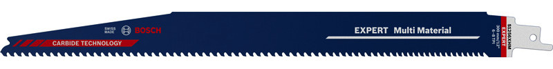 Herausragende Lebensdauer in zähen Baustoffen! Progressive Zahnteilung zum Trennen von Material jeder Dicke Viele Blätter, die angeblich ?für mehrere Materialien? geeignet sind, funktionieren gut in Holz und Baustahl. Härtere Elemente wie Schrauben oder Metallbeschläge können sie allerdings nicht schneiden. Das EXPERT Multi Material hat da keine Probleme: Seine Carbide-Zähne können härteste Stahlsorten schneiden ? immer und immer wieder. Da das Bosch EXPERT Multi Material-Säbelsägeblatt so viel länger hält und in jedem Material gute Leistung bietet, ist es für Profis von großem Wert. Sie erreichen mehr Produktivität bei ihrer Arbeit und müssen weniger Blätter kaufen. Überragende Lebensdauer dank Bosch Carbide Technology