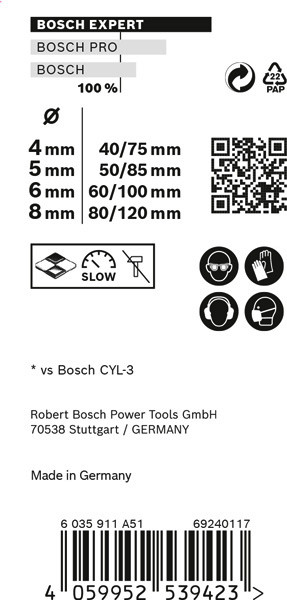 | Kurzbeschreibung | EXPERT CYL-9 Multi Construction Bohrer-Set, 4x75/5x85/6x100/8x120 mm, 4-tlg. |