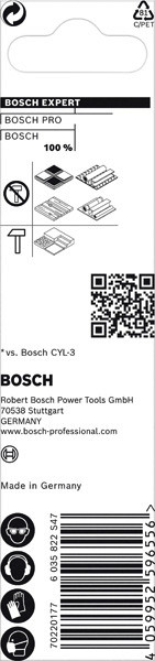 Hochpräzises Bohren in verschiedene Materialien! Präzises Anbohren von Löchern dank einer speziell konzipierten Zentrierspitze Moderne Baustellen erfordern das Arbeiten mit vielen verschiedenen Materialien und man weiß nie, was man als Nächstes bohren muss. Es kann schwierig und zeitaufwendig sein, den richtigen Bohrer zu finden ? es sei denn, du hast den EXPERT Multi Construction-Bohrer. Der Bosch EXPERT CYL-9 Multi Construction-Rundschaftbohrer darf in keinem Werkzeugkasten fehlen: Man kann jede Arbeit präzise erledigen und verliert keine Zeit mit der Suche nach dem richtigen Bohrer. Präzises Bohren ist mit Bosch Centering Geometry noch einfacher