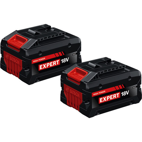 Akkupack 2x EXBA18V-80, Der leistungsstarke Akku EXBA18V-80 liefert bis zu 120 % mehr Laufzeit für hervorragendes kontinuierliches Arbeiten selbst in harten Anwendungen (verglichen mit Professional GBA 18V 4.0Ah. interner Labortest. Schleifen auf Weichstahl mit GWS 18V-15 S + Fächerscheibe, Intervalle von 30 s mit 5 s Pausen). Er basiert auf fortschrittlicher ?Tabless?-Zelltechnologie für eine Maximalleistung von bis zu 2400 W (interner Labortest. sofortige Maximalleistung, voll geladener, neuer Akku). Konventionelle Akkus besitzen ?Multi-Tab?-Zellen, die nur zwei Tabs zur Stromleitung nutzen. Dies führt zu einem Engpass, der den Widerstand des Akkus vergrößert. Die ?Tabless?-Zelltechnologie beseitigt diesen Engpass. Statt lediglich zwei Strompfaden bietet sie unzählige parallele Strompfade. Das Ergebnis: geringerer Widerstand, weniger Wärme, extreme Laufzeit und maximale Leistung. Mit seinem verstärkten robusten Gehäuse, dem ausgezeichneten Wärmemanagement mit COOLPACK 2.0 und ?Tabless?-Zelltechnologie bietet der EXBA18V-80 eine lange Lebensdauer und ist deshalb ideal für Profis, die Langlebigkeit und hohe Leistung benötigen. Der EXBA18V-80 hat einen vergrößerten Ladetemperaturbereich von ?10 °C bis +55 °C Akkutemperatur bei Verwendung mit EXAL18V2-320 oder EXAL18V-160. Er besitzt eine 5-LED-Anzeige für den Ladezustand mit Restkapazität und Defektrisikoerkennung. Kompatibel mit dem Bosch Professional 18V System und der markenübergreifenden AMPShare Akku-Allianz. Er kann mit dem EXAL18V2-320 oder EXAL18V-160 in lediglich 39 Minuten vollgeladen werden und wiegt nur 1,04 kg. Karton
