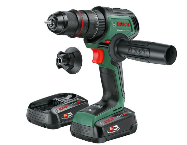 Akku-Schlagbohrmaschine AdvancedImpact 18V-80 QuickSnap. Vielseitiges Bohren und Schrauben mit Höchstleistung in verschiedenen Materialien. Kraftvolles Bohren und Schrauben mit einem maximalen Drehmoment von 82 Nm und stufenloser Drehzahleinstellung. Bürstenloser Motor und 13-mm-Metallbohrfutter für eine längere Lebensdauer. QuickSnap-Schnittstelle für die Verwendung der magnetischen Kappe oder zusätzlich erhältlicher Aufsätze zum Erreichen enger Stellen. Sicheres und präzises Arbeiten mit mehr Kontrolle dank Zusatzhandgriff. Geeignet zum Bohren in Holz, Metall, Kunststoff und Mauerwerk, sowie zum Schrauben. Syneon Technology für optimale Kraft und maximale Laufzeit. Kompatibel mit Bosch 18V POWER FOR ALL-Akku. 2 x Akku PBA 18V 2.5Ah. Austauschbares Metallbohrfutter. Magnetkappe. Schrauberbit. Zusatzhandgriff. Ladegerät AL 18V-44. Tragekoffer