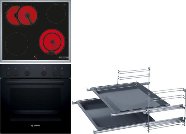 Einbauherd HEF 010BA1: weitere Beheizungsarten: Heißluft sanft, variabler Großflächengrill, Umluftgrill; Schnellaufheizung, Kühlgebläse, Auszug nachrüstbar, Email anthrazit, Zubehör: 1 Kombirost, 1 Universalpfanne,