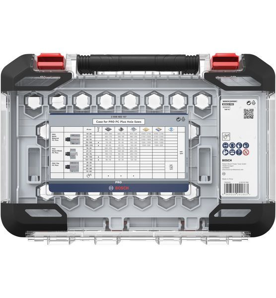 Praktische Aufbewahrung für Lochsägen! Benötigst du einen Koffer, um deine Lochsägen sicher und gut organisiert aufzubewahren? Wir haben den Aufbewahrungskoffer für PRO PC Plus Lochsägen für Profis entwickelt, die eine praktische Aufbewahrungsmöglichkeit für ihre Lochsägen-Sets suchen.
