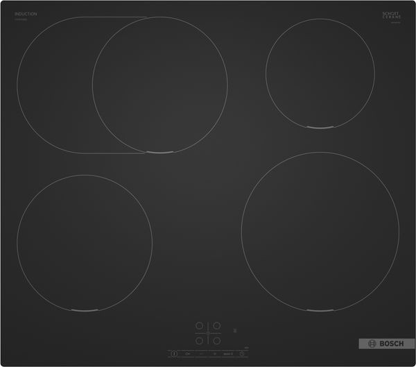 60 cm: Platz für 4 Töpfe oder Pfannen Flexibilität der Kochzonen Bräterzone: Extra zuschaltbare Kochzone für großes Bratgeschirr Kochzone vorne links: 180 mm, 1.8 kW (maximale Leistung 3.1 kW) Kochzone hinten links: 180 mm, 280 mm, 1.8 kW (maximale Leistung 3.1 kW) Kochzone hinten rechts: 145 mm, 1.4 kW (maximale Leistung 2.2 kW) Kochzone vorne rechts: 210 mm, 2.2 kW (maximale Leistung 3.7 kW) Benutzerfreundlichkeit Touch Select Bedienung: Steuerung der Leistung über +/- Touch-Tasten. 17 Leistungsstufen: Stelle die Hitze mit 17 Leistungsstufen (9 Hauptstufen und 8 Zwischenstufen) präzise ein. Timer mit Abschaltfunktion: Schaltet die Kochzone am Ende der eingestellten Zeit aus (z. B. für gekochte Eier). Countdown-Timer: Ein Signal ertönt am Ende der eingestellten Zeit (z. B. beim Pastakochen). Zeitersparnis und Effizienz Power Boost-Funktion für alle Kochzonen: Mit 50 % mehr Leistung z. B. Wasser schneller zum Kochen bringen als auf höchster Leistungsstufe. Quick Start: Beim Einschalten wählt das Kochfeld automatisch die Kochzone aus, auf dem im ausgeschalteten Zustand Kochgeschirr platziert wurde. Re Start: Im Falle von unbeabsichtigtem Ausschalten des Kochfeldes bleiben alle Einstellungen erhalten, wenn du innerhalb von 4 Sekunden wieder einschaltest. Schnelles Abschalten: Schnelles Abschalten durch längeres Berühren der Bedienfläche der Kochzone. Design Matt Design: Elegantes, mattes Glaskeramikdesign, das weniger anfällig für sichtbare Kratzer und Fingerabdrücke ist. Rahmen: Rahmenlos aufliegend Sicherheit 2-stufige Restwärmeanzeige je Kochzone: Zeigt an, welche Kochzonen noch heiß oder warm sind. Kindersicherung: Verhindert eine unbeabsichtigte Aktivierung des Kochfeldes. Hauptschalter: Alle Kochzonen auf einmal ausschalten. Automatische Sicherheitsabschaltung: Aus Sicherheitsgründen schaltet sich das Kochfeld nach einer voreingestellten Zeit ohne Interaktion automatisch ab. Installation Maße des Gerätes (HxBxT mm): 51 x 592 x 522 Erforderliche Nischenmaße (HxBxT mm): 51 x 560 x (490 - 500) Minimale Arbeitsplattenstärke: 16 mm Gesamtanschlusswert: 7400 W PowerManagement Funktion: Bei Bedarf die maximale Leistung begrenzen (abhängig von der Absicherung der Elektroinstallation). Netzkabel: 110 cm, Anschlusskabel beigelegt in Verpackung