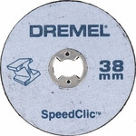 Was kannst du damit tun?. Zum Schneiden und Trennen von Metall einschließlich gehärtetem Stahl. Ideal zum Trennen, Einkerben und Zuschneiden aller Arten von Metall. Trennscheiben erleichtern das Trennen von Bolzen und Schrauben oder das Einkerben verrosteter oder beschädigter Bolzen und Schrauben, um diese mit Hilfe eines Schraubendrehers zu entfernen. Glasfaserverstärkt für eine längere Lebensdauer. Die Trennscheiben der Serie SC409 sind nur 0,75 mm dick und erlauben so noch dünnere Schnitte. Wie funktioniert es?. Zur Verwendung mit dem Aufspanndorn SC402. Der exklusive Easy SpeedClic (SC)-Mechanismus von Dremel sorgt für einen schnellen, leichten und schlüssellosen Scheibenwechsel: ZIEHEN ? DREHEN ? KLICKEN. 6 Mal schnellerer Zubehörwechsel als mit einem Standarddorn (EZ SpeedClic Aufspanndorn SC402 separat erhältlich). Trennscheiben können nur am Rand verwendet werden.. Für dieses Zubehör empfehlen wir einen (beidhändigen) Golf-Griff und die Verwendung des Winkelvorsatzes, wenn an einer schwer erreichbaren Stelle geschnitten werden soll. Um die Lebensdauer der Scheibe zu optimieren, übe nur geringen Druck aus und halte dich an die Drehzahlbeschränkungen. Zur Verwendung auf folgenden Materialien. Diese Trennscheibe kann an verschiedenen Metallsorten wie Aluminium, Kupfer, Gusseisen oder sogar gehärtetem Stahl verwendet werden. Empfohlene Drehzahl. Aluminium 35000 Messing 35000 Kupfer 35000 Stahl 35000.