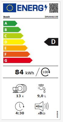 | Energieeffizienzklasse Geschirrspüler (2019/2017/EU) | D |