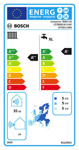 Jahreszeitbedingte Raumheizungs-Energieeffizienz bei durchschnittlichen Klimaverhältnissen (55°C Vorlauftemperatur): 146 %