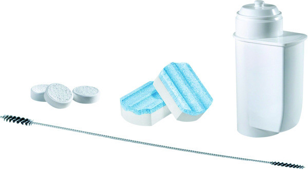 beinhaltet sämtliche Komponenten für eine optimale Pflege und Reinigung des Kaffeevollautomaten: 10 Reinigungstabletten, 3 Entkalkungstabletten, 1 BRITA Intenza Wasserfilter, 1 spezielle Reinigungsbürste für Milchschlauch/-steigrohr