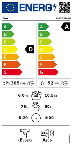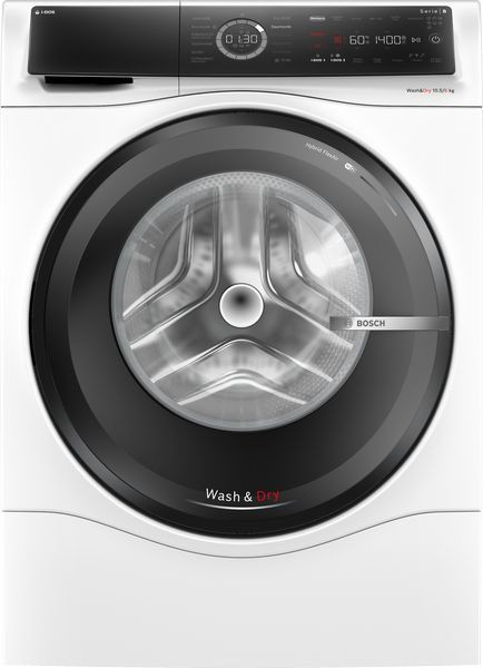 Leistung und Verbrauch Energieeffizienzklasse Waschen und Trocknen¹: D Energieeffizienzklasse Waschen²: A Stromverbrauch³ / Wasserverbrauch4 Waschen und Trocknen: 305 kWh / 75 Liter Stromverbrauch5 / Wasserverbrauch6 Waschen: 52 kWh / 50 Liter Beladung Waschen und Trocknen / Waschen: 1 - 6 kg / 1 - 10.5 kg Programmlaufzeit7 Waschen und Trocknen / Waschen: 8:20 h:min / 4:00 h:min Schleudereffizienzklasse: B Schleuderdrehzahl**: 400 - 1400 U/Min. Geräuschwert: 70 dB (A) re 1 pW Geräuscheffizienzklasse: A Programme Standardprogramme Waschen: Baumwolle, Pflegeleicht, Fein/Seide, Wolle/Handwäsche Spezialprogramme Waschen: Automatik Sanft, ExtraKurz 15', Schleudern/Abpumpen, weitere Programme über Home Connect, Sportswear, Spülen Alle gängigen Waschprogramme können wahlweise auch als reines Trockenprogramm oder als kombiniertes Wasch- und Trockenprogramm genutzt werden Standardprogramme Trocknen: Baumwolle, Pflegeleicht Spezialprogramme Trocknen: Auffrischen, Waschen & Trocknen 45' Zusätzliche Programme über Home Connect: Hemden, Feuchtigkeit entfernen, Wäsche erwärmen, Fast Hygiene, Automatik Optionen Home Connect: Fernsteuerung, Energiemanagement, Ferndiagnose, IntelligentDry oder Programm Download. Halte Dein Hausgeräte dank Firmware-Update immer auf dem neuesten Stand. Fleckenautomatik - 3 Flecken stehen auf der Blende und weitere 13 Flecken stehen über Home Connect zur Verfügung SpeedPerfect: perfekt sauber in bis zu 65% weniger Zeit. *** Optionen Waschen: Bügelleicht, Drehzahlwahl, Extra Spülen, Fleckenautomatik, HygieneCare, i-DOS 1, i-DOS 2, Kindersicherung, Lieblingsprogramme, Fernstart, SpeedPerfect, Start / Pause, Temperaturwahl, Vorwäsche, Zeitvorwahl Optionen Trocknen: Bügeltrocken, Solo Trocknen, Schranktrocken, Schranktrocken+, Trockenziel, Waschen + Trocknen Trocknen-Option für die meisten Waschprogramme AutoDry-Funktion, Zeitprogramme Komfort und Sicherheit i-DOS: dosiert vollautomatisch Flüssigwaschmittel und Weichspüler Großes Touch LED-Display für Statusanzeige, Temperaturwahl, Schleuderdezahl, Restzeitanzeige, Endezeitvorwahl und Beladungsempfehlung Trommelinnenbeleuchtung: LED EcoSilence Drive: leiser Motor mit langer Lebensdauer 10 Jahre Motorgarantie Außergewöhnlich komfortable Steuerung dank abgeschrägter Bedienblende für bessere Lesbarkeit und mehr Ergonomie AntiVibration Design: mehr Stabilität und Laufruhe Nachlegefunktion: Die Nachlegefunktion ermöglicht Ihnen das Nachlegen von Wäschestücken sogar nach Start des Waschprogramms. ActiveWater Plus: für effizienteste Wassernutzung auch bei kleinen Waschladungen dank automatischer Beladungskennung. Geräuschdämmung Wartungsfreier Wärmetauscher: automatische Flusenentfernung Schaumerkennung Türanschlag links AquaStop®: eine Bosch Garantie bei Wasserschäden - ein Geräteleben lang* Technische Informationen Stapelbar als Wasch-Trockensäule, mit dem zum Trockner passenden Verbindungssatz (Sonderzubehör) unterschiebbar ab 85 cm Nischenhöhe Gerätemaße (H x B): 84.8 cm x 59.8 cm Gerätetiefe: 62.2 cm Gerätetiefe inkl. Tür: 65.4 cm Gerätetiefe mit geöffneter Tür: 114.2 cm