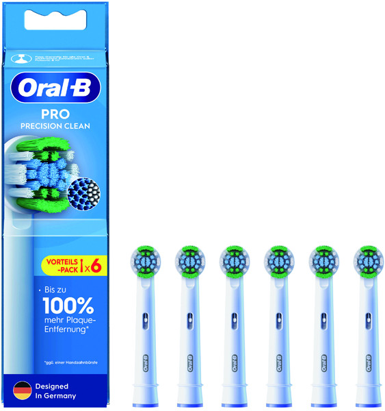passt sich mit 3 verschiedenen Borstenlängen an jeden Zahn an, mit neuen X-förmigen Borsten entwickelt, die nun auch die Stellen reinigen, die normale Borsten nicht erreichen können, grüne Indikator-Borsten färben sich mit der Zeit je nach individueller Nutzung gelb und zeigen damit den optimalen Zeitpunkt zum Wechseln an, kompatibel mit allen Oral-B Handstücken, außer Pulsonic & iO