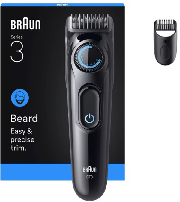 ultrascharfe Klinge, Präzisionsrad mit 20 Längeneinstellungen in präzisen 0,5-mm-Schritten, inkl. 1 Kammaufsatz, Li-Ion-Akku, Akkukapazität ca. 50 Min., Reinigungsbürste